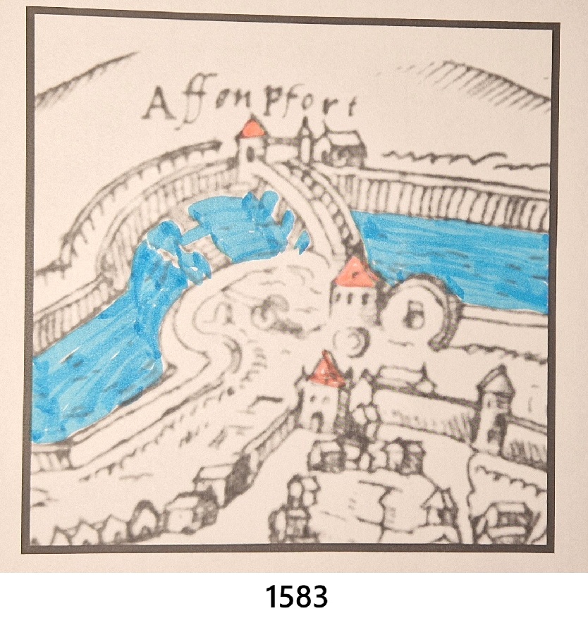Der Hirschgraben auf den Plänen von 1549, 1552, 1572 und 1583