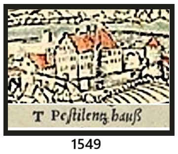 Vielleicht hätte man bei der Besetzung Frankfurts 1547 und bei dessen Belagerung 1552 doch eher ein Spital, als ein Zeughaus gebraucht. Besonders 1547 waren Tausende von der Diphtherie und der Ruhr hinweggerafft worden und so hat es wohl das Pestilenzhaus auf dem Klapperfeld in die Legende des Planes von 1549 gebraucht. 1553 waren aus England geflohene Protestanten in diese Seuchenstation eingezogen, bald aber - in England wieder willkommen - auch wieder ausgezogen, so dass das Gebäude für die nächsten hundert Jahre Frankfurts Pest-, Pocken- und Syphiliskranken zur Verfügung stand.