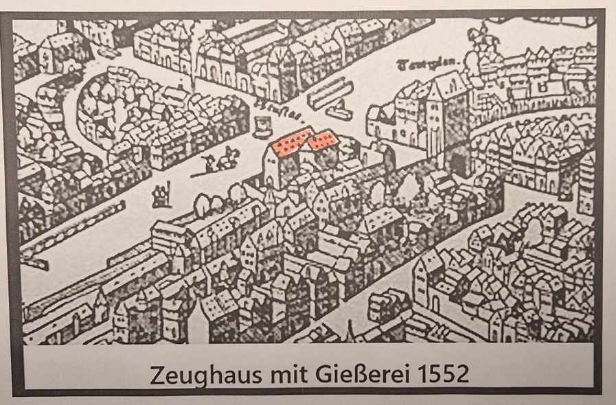 Ist auf dem Faber-Plan von 1549 der Nürnberger Hof, das große Messe-Quartier der Stadt, im Gewimmel der Altstadt noch nicht einmal zu erahnen, ist er auf dem Belagerungsplan von 1552 klar erkennbar und auf dem Hoffmann-Plan auch schon in der Legende vermerkt. Verständlich, hatte doch der Messehandel im 16.Jahrhundert einen deutlichen Aufschwung genommen.