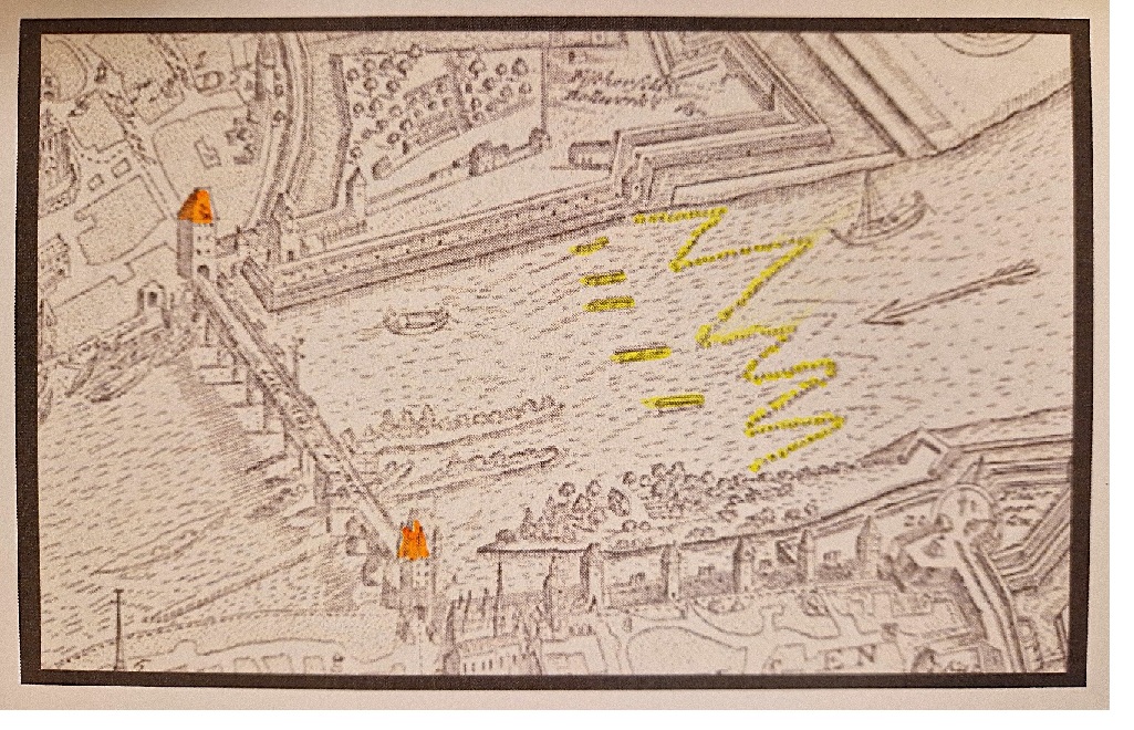Die Alte Brücke und die Stockagen auf dem Bodenehr-Plan von 1726