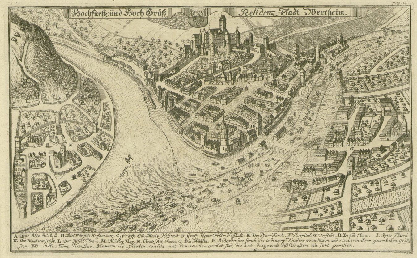 Im Sommer 1732 war eine Flut von protestantischen Flüchtlingen, vertrieben aus dem Salzburger Land über Frankfurt ins protestantische Deutschland, vor allem nach Preußen gezogen und endlich wollte es einmal ein bißchen ruhiger werden, da traf eine Wetterkatastophe den Odenwald und das angrenzende Taubertal. Am 29.September, dem Michaelistag - und der Erzengel Michael war immerhin der Schutzpatron Deutschlands - regnete es im Odenwald und im Unterfranken, südlich des Mains, derart heftig, dass die Erf, die Tauber und auch alle Bächlein und Flüßchen im Odenwald blitzartig über die Ufer traten und alles rechts und links ihres Weges mit sich rissen. An Erf und Tauber wurden ganze Dörfer entvölkert, eine Katastrophe, die sich eigentlich nur mit dem Ahrtalhochwasser von 2021 vergleichen läßt. Innerhalb von Stunden wurden auch Wertheim, dort mündet die Tauber in den Main und Miltenberg, an der Mündung der Erf, Opfer dieser Flut, aber auch das weit entfernte Bensheim an der Bergstraße war heftig betroffen.