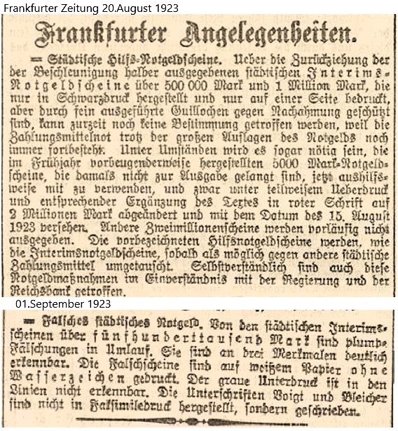 (auch interessant, was der Frankfurter Stadtadler auf den Notgeldscheinen für Metamorphosen durchmachte)